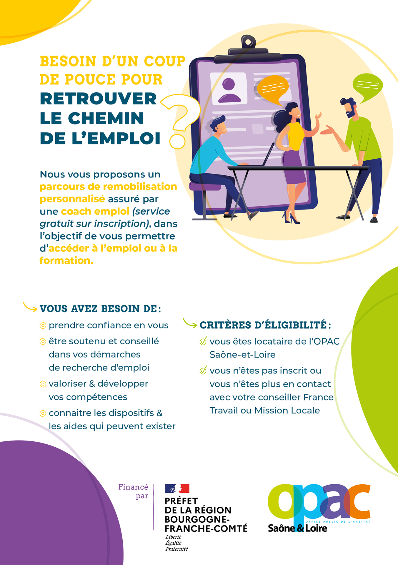 Vous hésitez, vous avez des questions ? Contacter Olivia Bugaud, coach emploi à l’OPAC Saône-et-Loire au 06 85 27 70 81